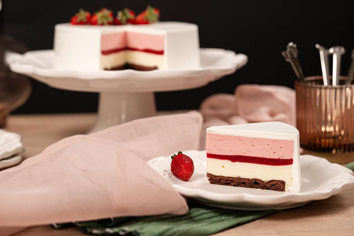TORTURI Tort iaurt și căpșuni 139 lei / kg Cremă ușoară de iaurt, îmbrățișată de dulceața căpșunilor și învăluită într-un sos rubiniu, totul pe un blat ciocolatiu aerat.Fiecare felie amintește de echilibrul gustos dintre cremă și fruct.Alergeni: ouă, lapte, gluten ingrediente